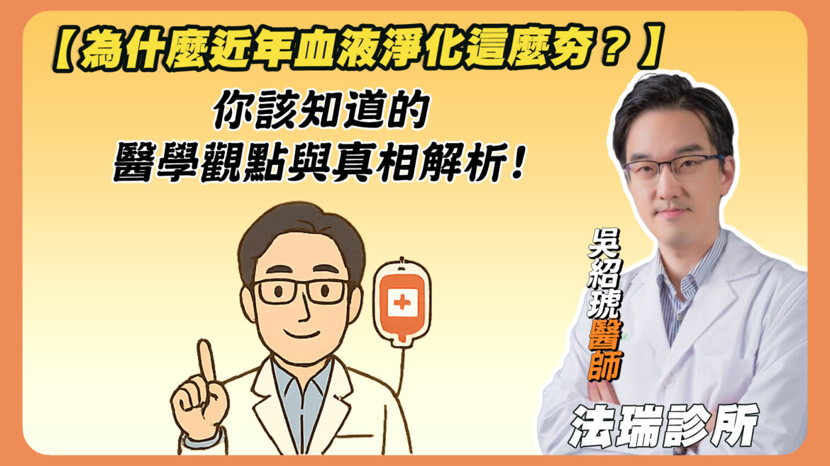 那麼問題來了,血液淨化到底是什麼?真的有科學根據嗎?是不是每個人都適合做?又為什麼近年這麼火紅?今天這篇文章,我會用臨床角度好好為大家整理血液淨化背後的原理、分類與風險,幫助你釐清選擇前該知道的所有重點。